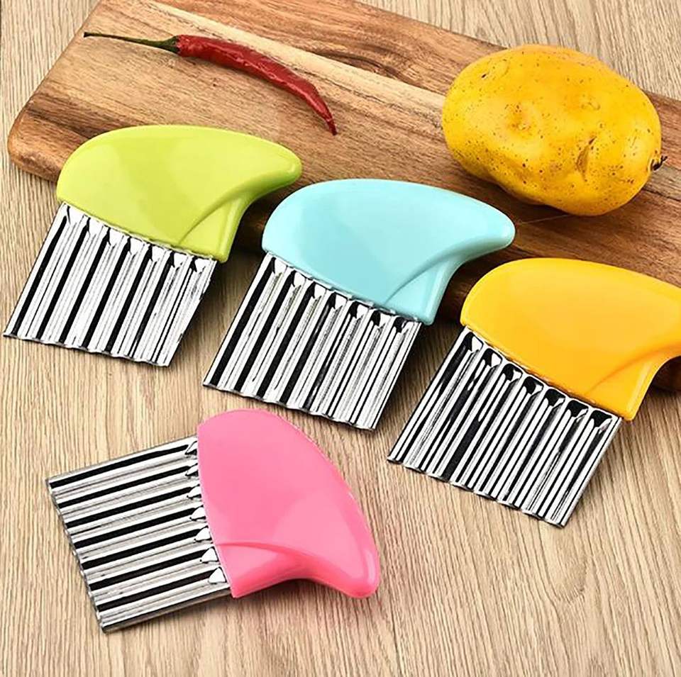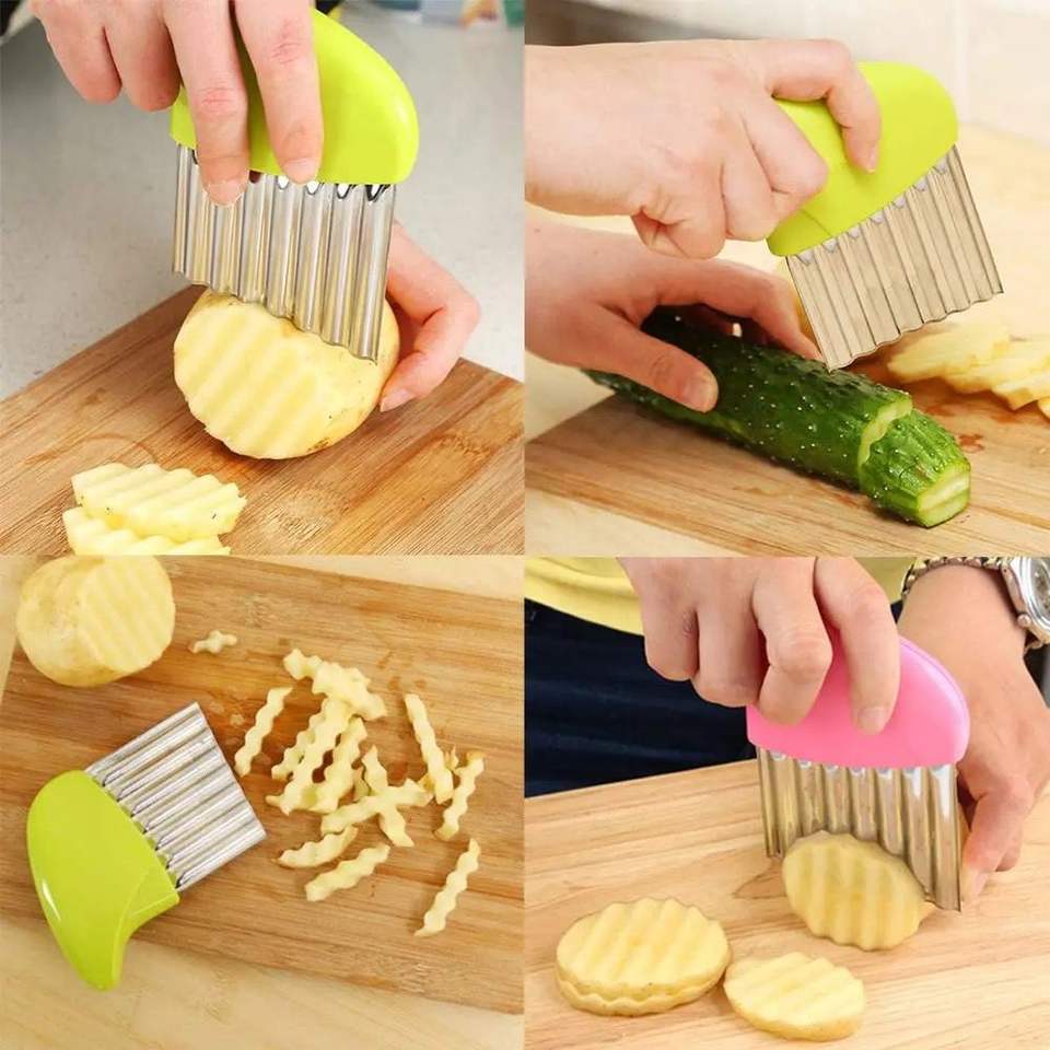 Cuchillo Ondulado de Acero Inoxidable Personalizable, para Cortar Papas Fritas, Chips y Picar, Cortador de Patatas Onduladas