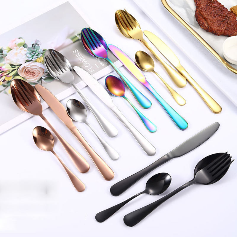 Vajilla de acero inoxidable de gran venta, Juego de 4 piezas, cuchillos dorados, tenedores, cucharas, vajilla negra, nuevos cubiertos de boda de lujo