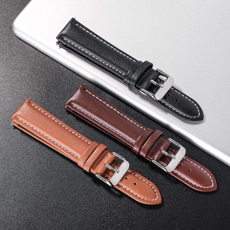Correa de reloj inteligente de cuero cosida de gran venta, 18mm 20mm 22mm, correa de muñeca ajustable de repuesto para relojes inteligentes