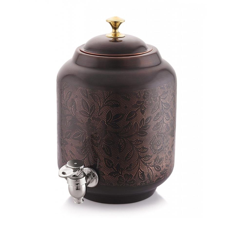 Recipiente de almacenamiento de Venta caliente con producto de cobre puro de alta calidad Diseño impreso a granel Dispensador de agua de cobre Olla Matka