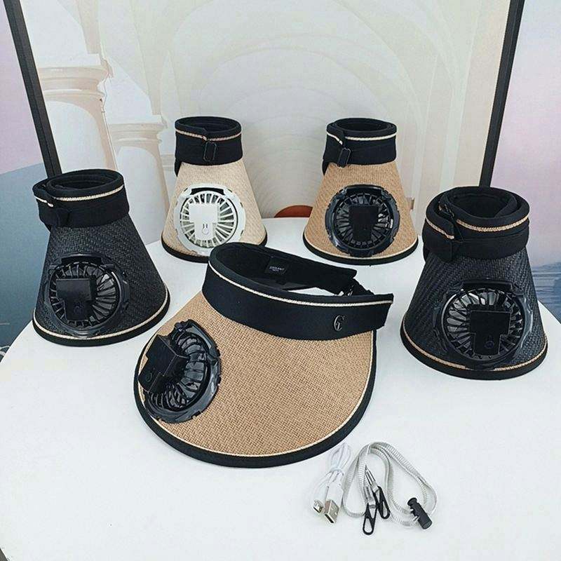 Gorra Visera Ancha de Verano con Protección UV, Sombrero de Ciclismo para Exteriores, Visera de Paja Recargable por USB con Ventilador