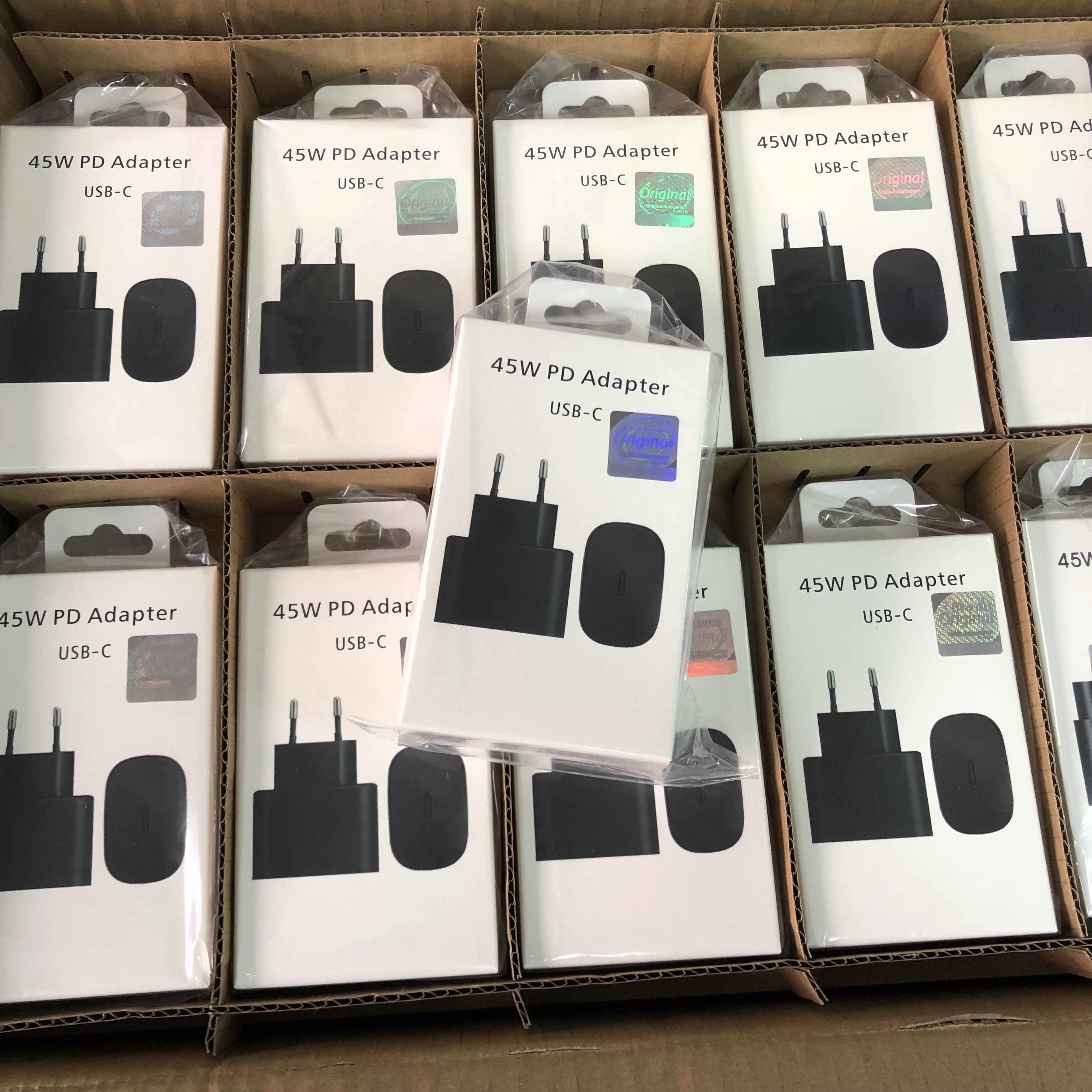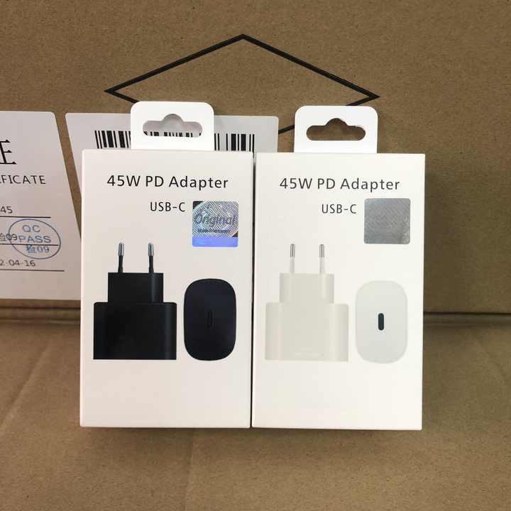 Venta caliente Super adaptador de carga rápida 45W PD cargador para Samsung Galaxy S23 S2 S21 Note 20 Ultra S20 adaptador de cargador con caja