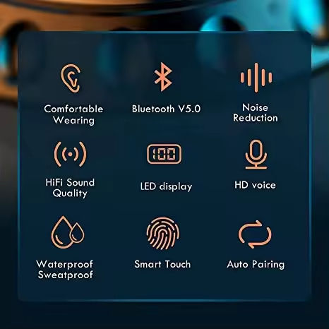 Audífonos Intrauditivos Estéreo TWS de Alta Fidelidad, Audífonos Inalámbricos con Pantalla Digital e Indicador de Batería, Resistentes al Agua