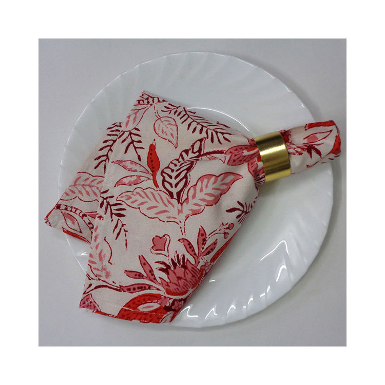 Servilleta de Mesa Blanca Hecha a Mano con Estampado en Bloque, 100% Algodón Original y Puro, Moderna para Comedor