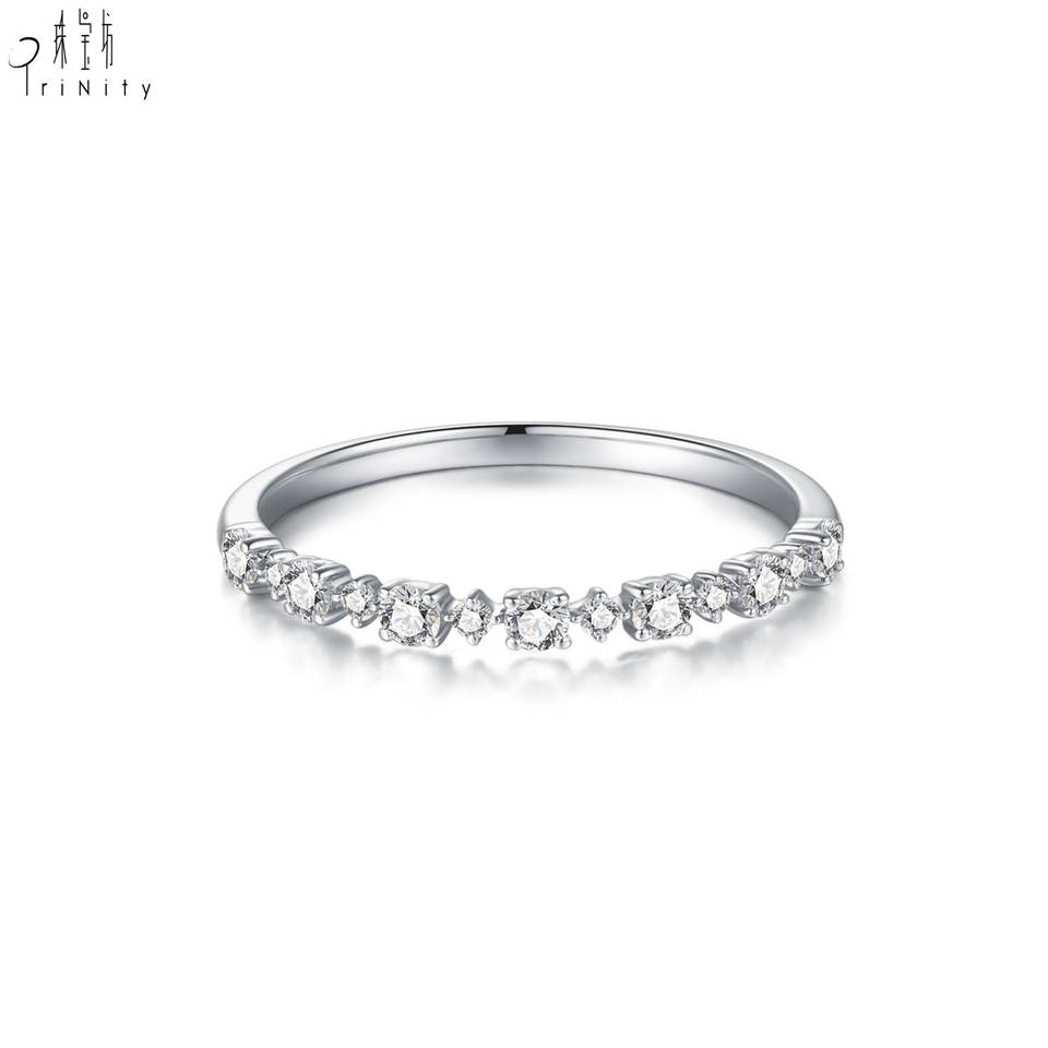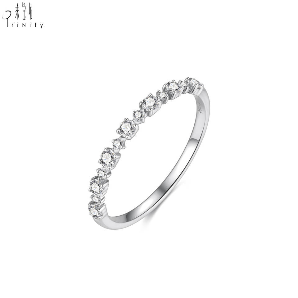 Anillo de Media Eternidad de Diseño Moderno y Popular, Joyería Fina de Oro Sólido de 18K con Diamantes Naturales Reales, Anillo Apilable para Regalo de Pareja