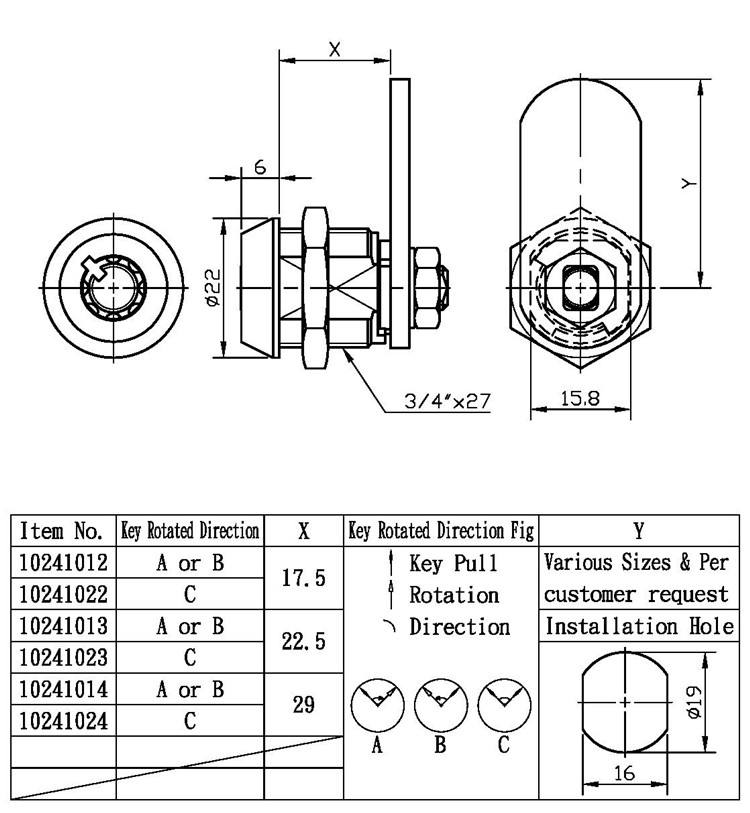 Cerradura de leva para caja fuerte para pistola tubularNombre del Producto