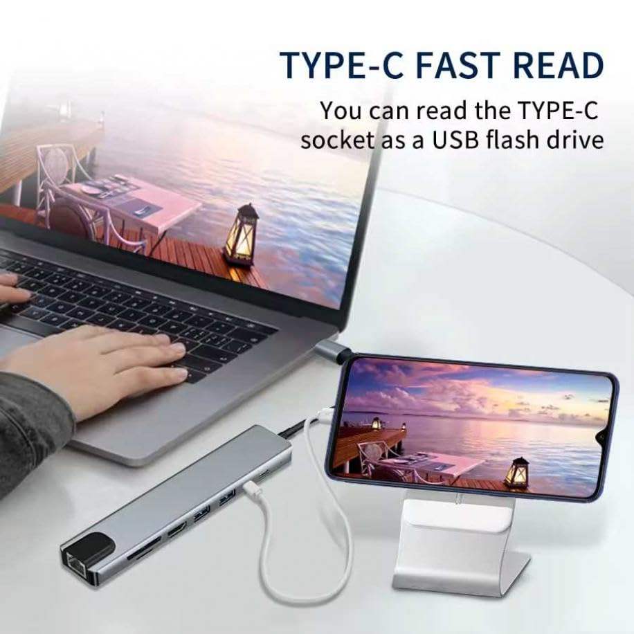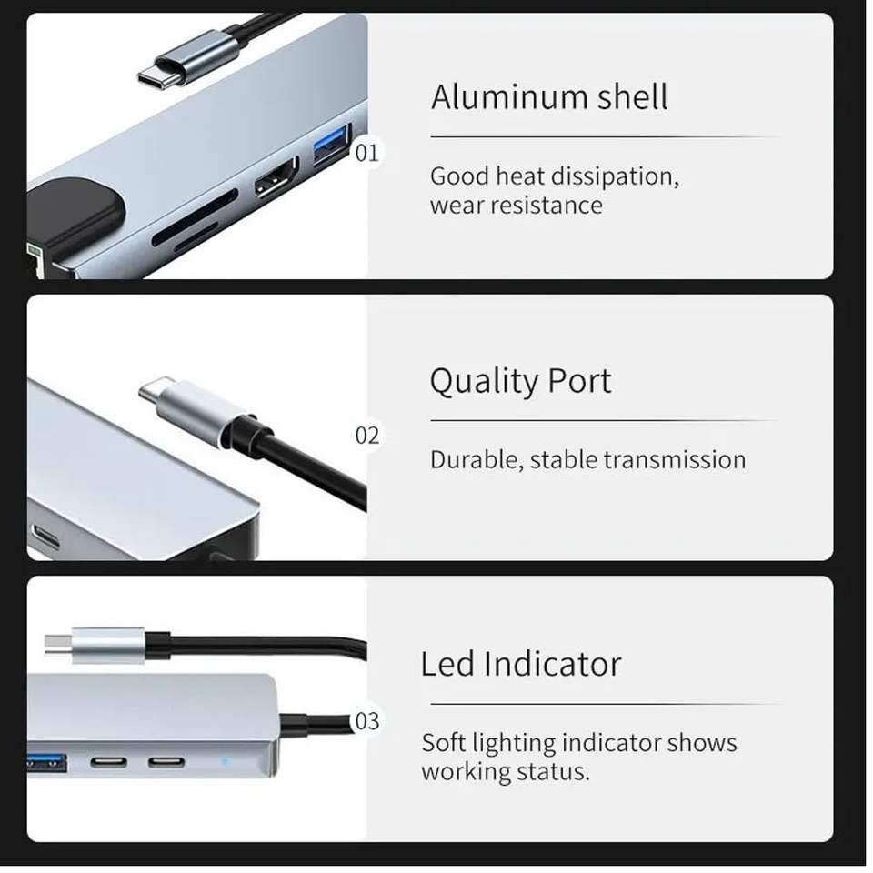 8 in 1 HDTV+PD+2USB+Type-C+SD+TF+RJ45