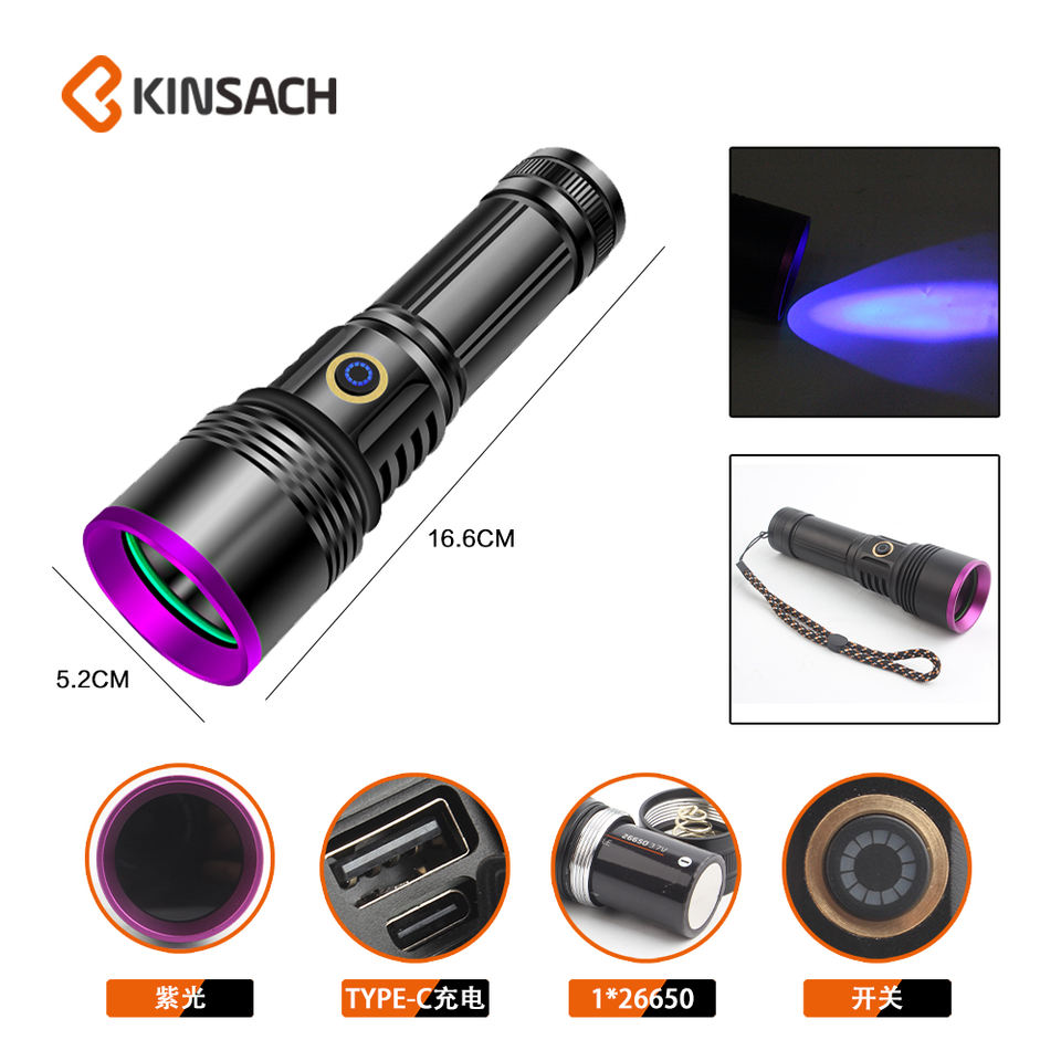 Linterna UV de Venta caliente, linterna LED de luz negra ultravioleta profesional portátil para acampar al aire libre