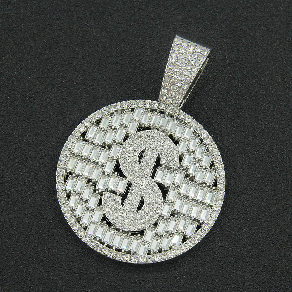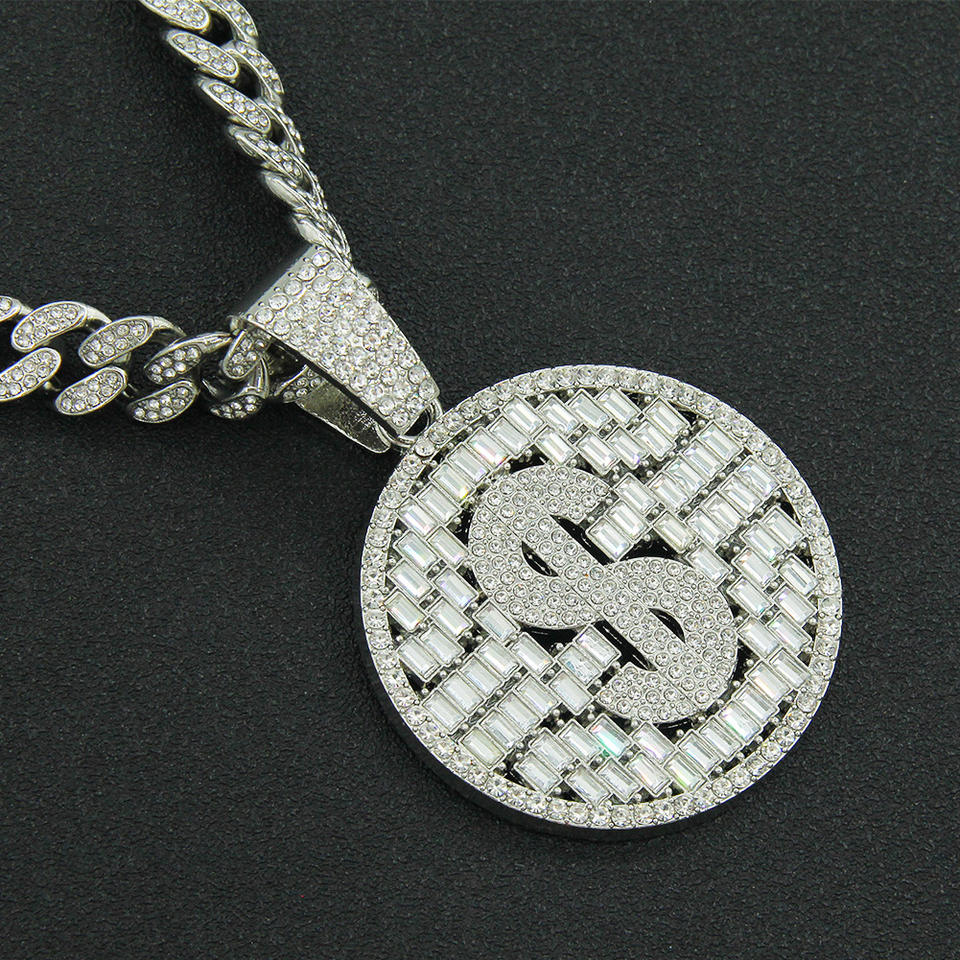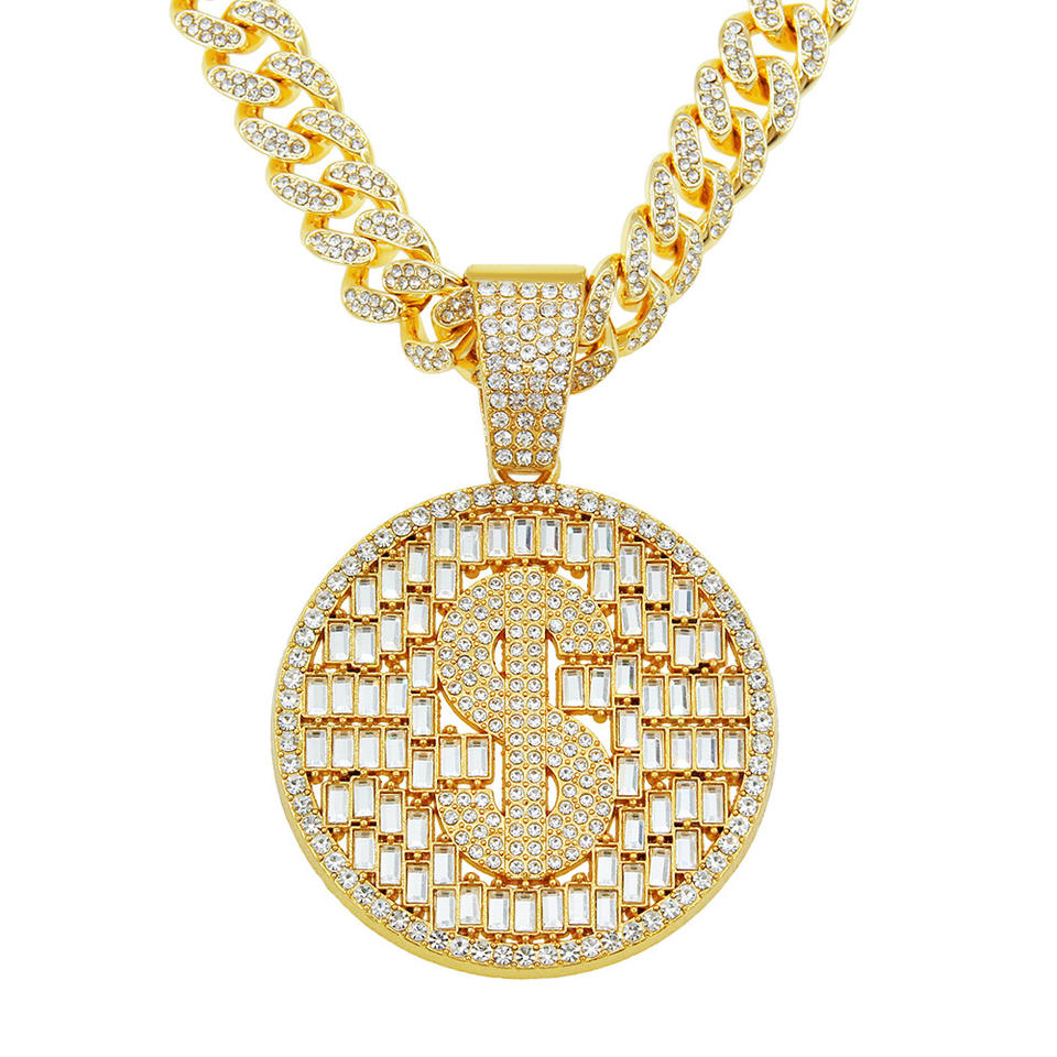 Collar con Colgante de Signo de Dólar Circular Geométrico de Diseño Único, Estilo Hiphop, Popular entre los Hombres, Joyería de Moda al por Mayor