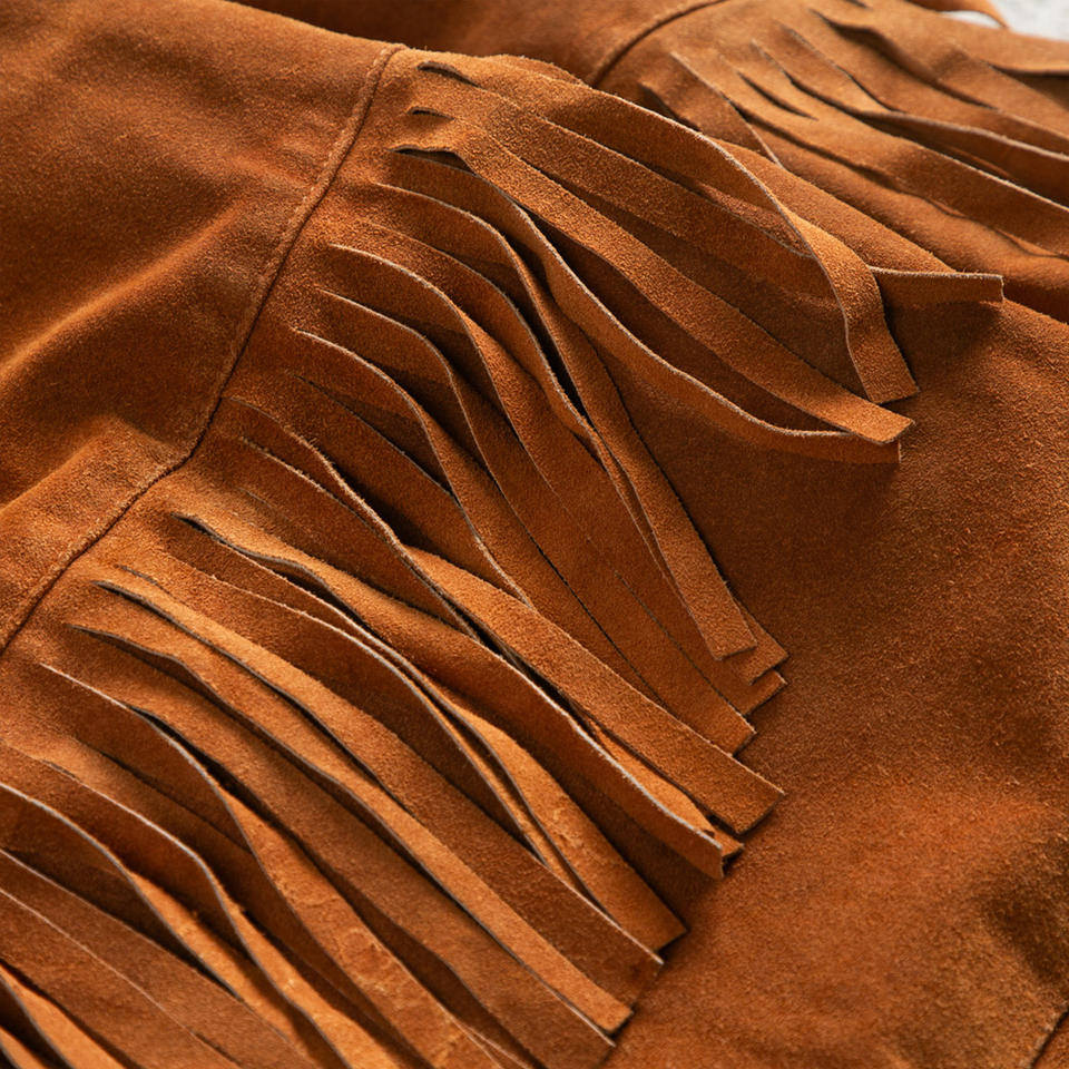Nombre del producto:Chaqueta de Cuero de Ante con Flecos