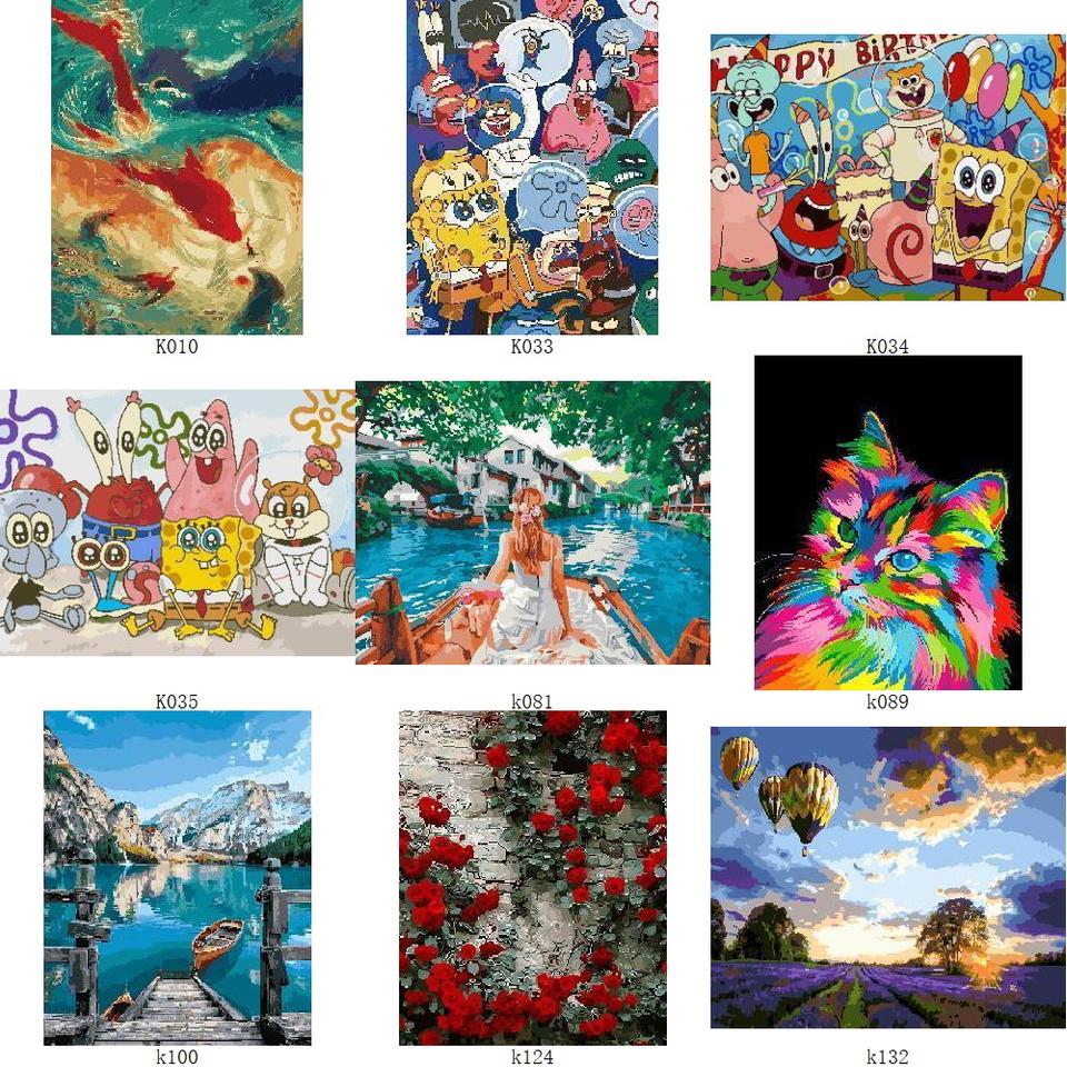 Paquete incluido:Lienzo, pinturas acrílicas, pinceles, tarjeta de referencia