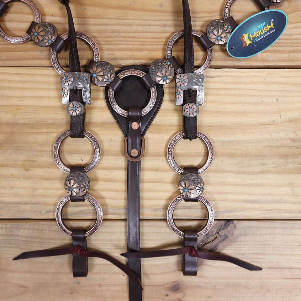 Juego de Cabezada y Pechera Occidental de Venta Caliente, Hecho a Mano con Flores y Cuentas, Herrajes de Latón y Acero Inoxidable para Montar a Caballo