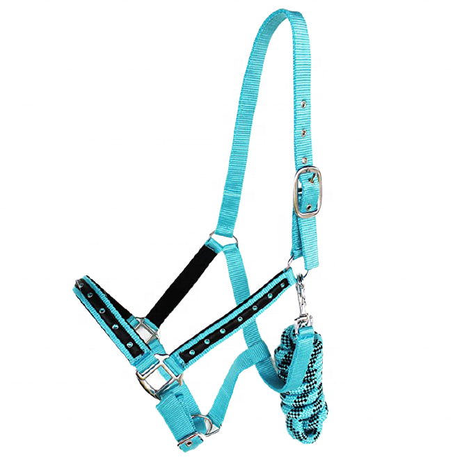 Cabestros de nailon ostentosos de cristal equino estilo sillín occidental de Venta caliente con cuerda de plomo a juego para montar a caballo