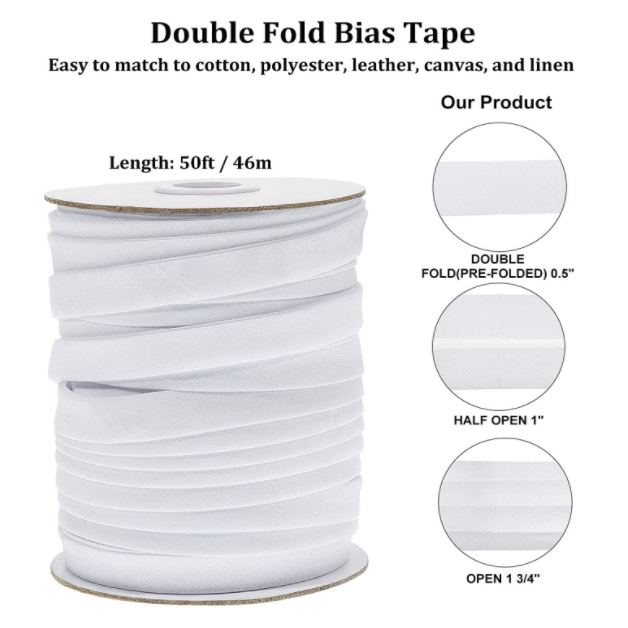 Cinta de encuadernación al bies de doble pliegue de Color blanco de Venta caliente para coser costura encuadernación dobladillo tubería acolchado