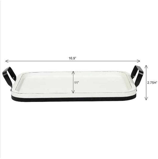 Venta caliente Bandeja de madera blanca Bandeja rectangular de madera sólida para servir y decorar con asas de metal