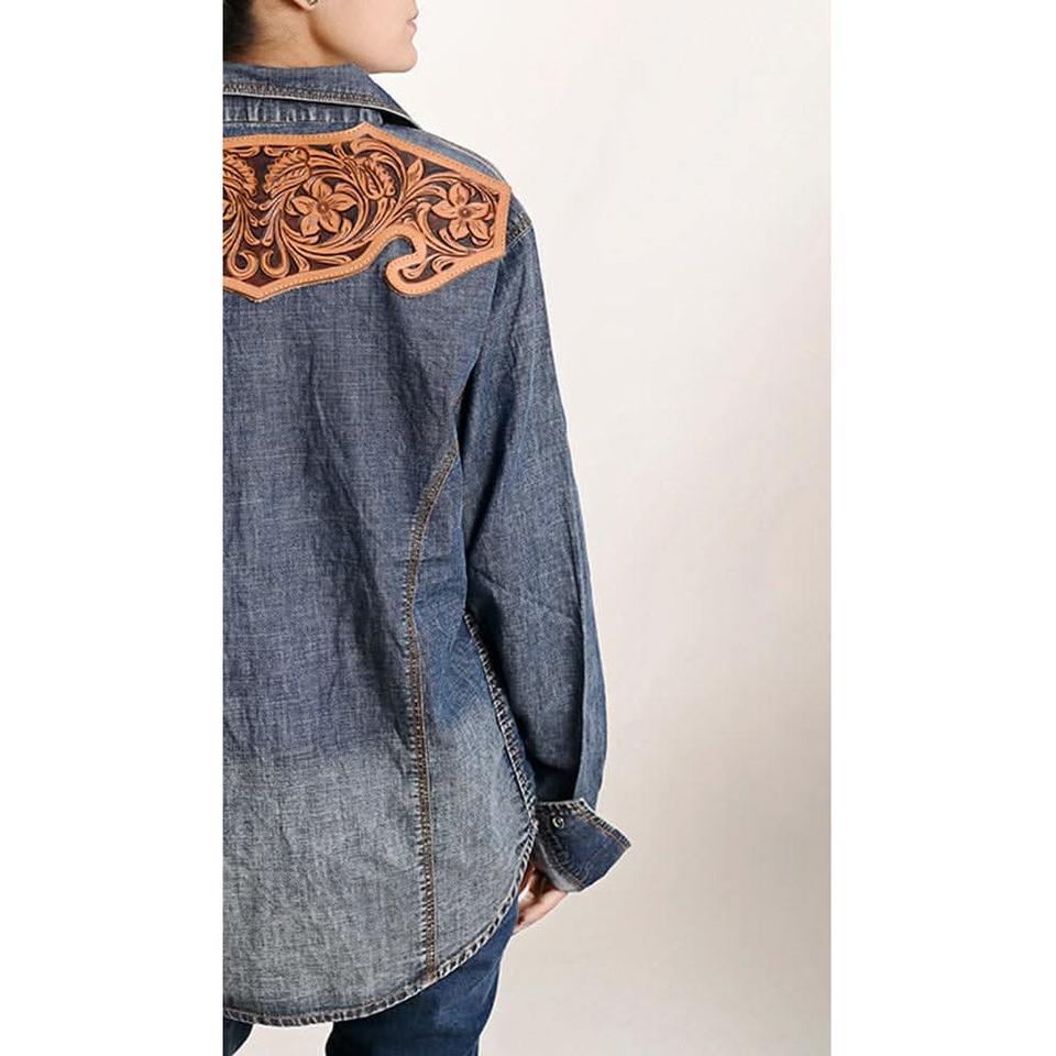 Product Name:Women Denim Shirts With Leather Patch Back