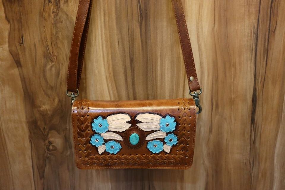 Producto:Aztec Tooled Cuero Bolsa de mensajero