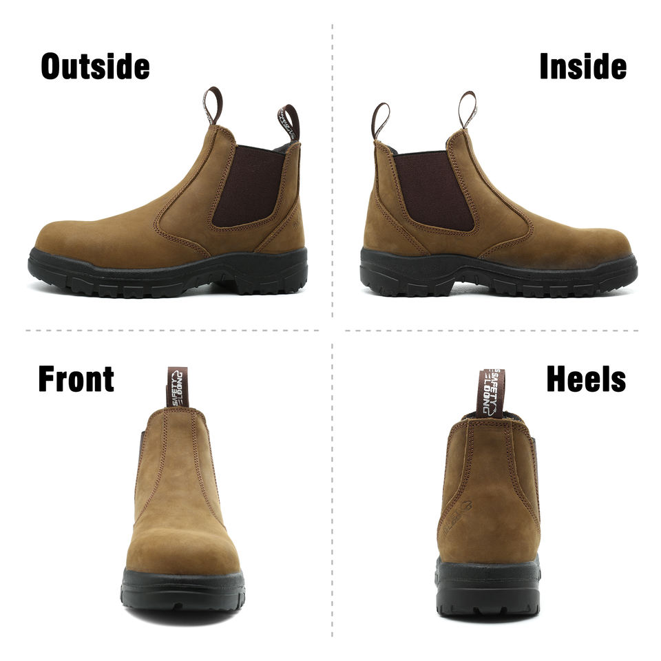 Botas de trabajo para hombre con puntera composite, más vendidas; resistentes a aplastamientos, sin cordones, antideslizantes, botas de seguridad marrones de cuero