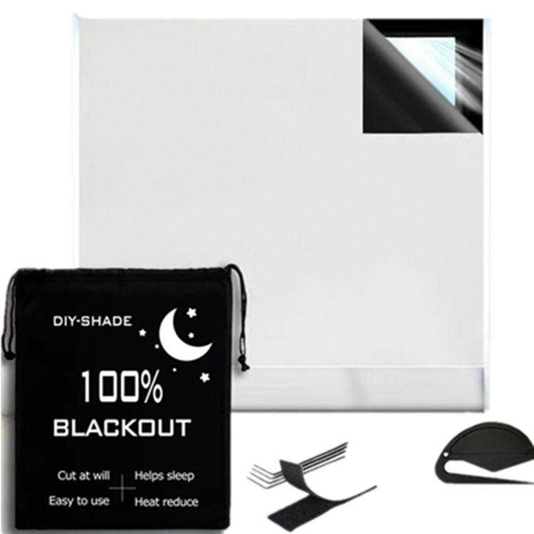 Venta caliente para Amazon Portable Sun Proof Cuttable Blackout Cortina 100% Poliéster Tejido Técnica Disponible en Silver Black Coa