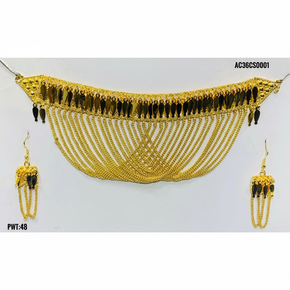 Conjunto de Collares de Moda con Diseño Árabe Clásico, Chapados en Oro, de Latón, para Mujer, con Cadena de Eslabones