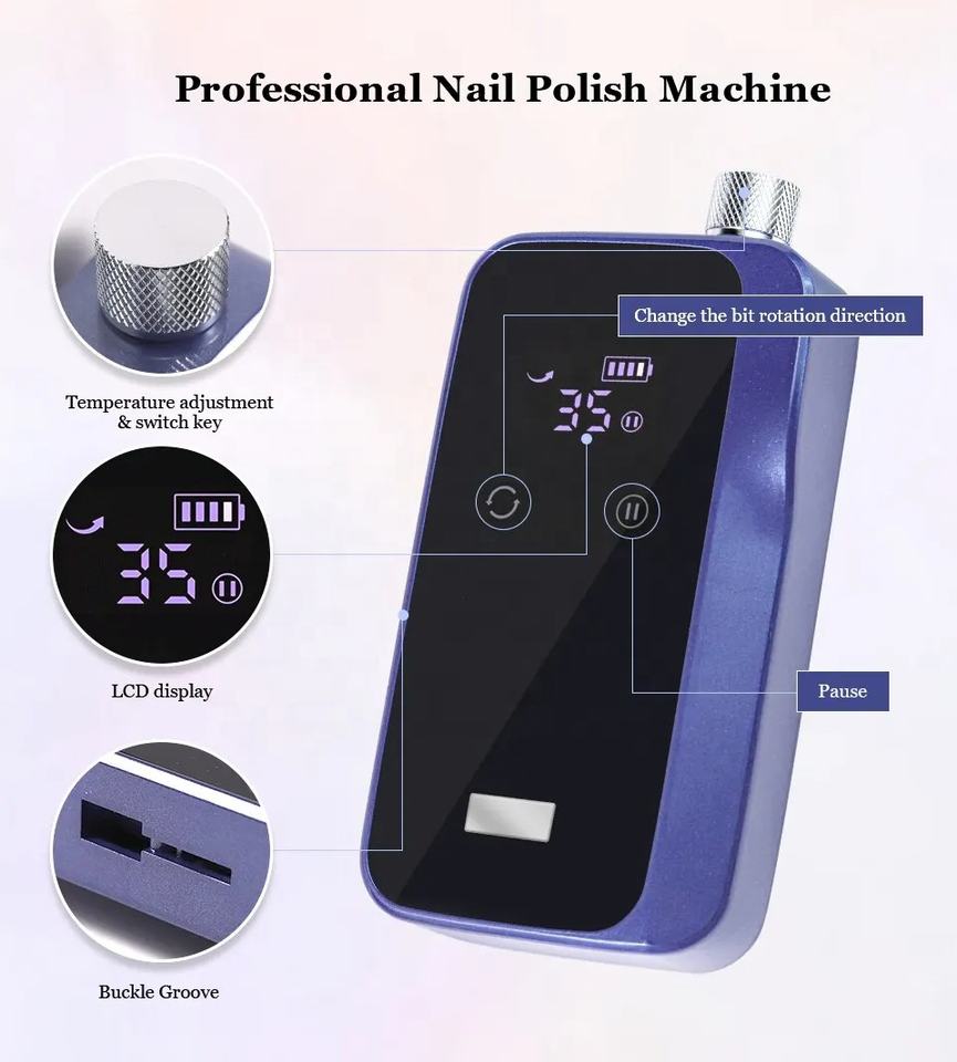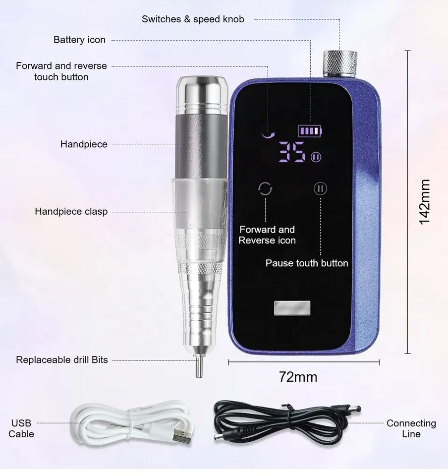 Taladro de uñas recargable eléctrico de alta velocidad de estilo caliente con máquina lijadora de uñas herramienta de pedicura