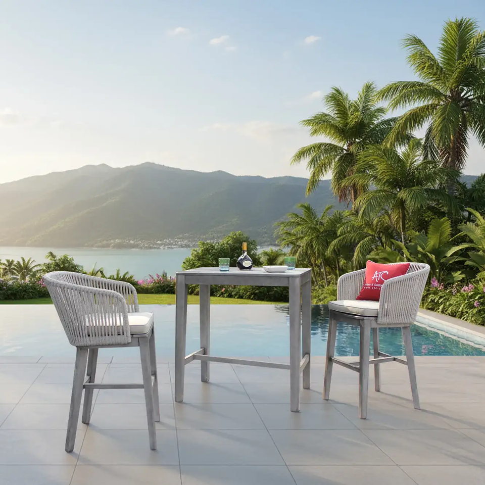 Verano caliente de moda de mimbre de ratán PE Bar 2 sillas y Acacia mesa de madera para muebles al aire libre RABR-099 (estilo 6)