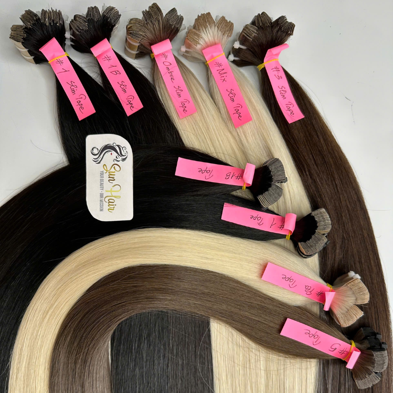 2024 tendencia caliente cabello vietnamita 100% virgen Remy cutícula completa alineada extensiones de cinta de Grado Superior colores personalizados Super Wave Natural