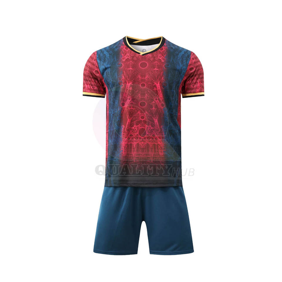 Uniforme de fútbol personalizado de tendencia caliente Último diseño de camiseta de fútbol con logotipo impreso Pantalones cortos de desgaste del equipo usando sublimación