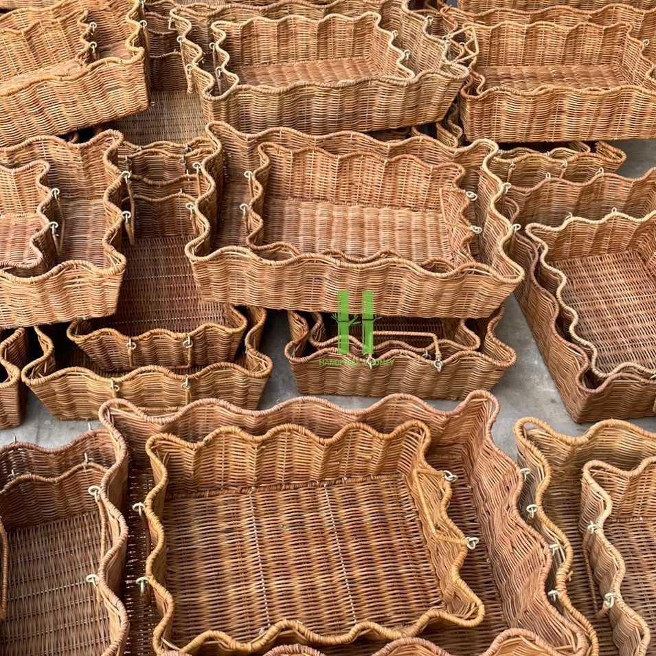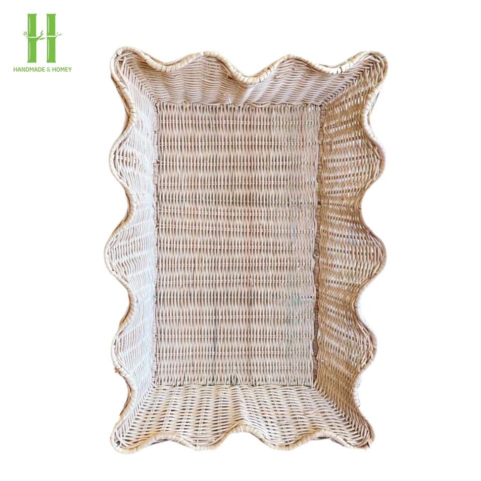 HNH Craft Vietnam Bandeja Rectangular de Mimbre Ondulado Elegante y de Moda, Tejida a Mano, con Asas, Bandejas Decorativas Naturales