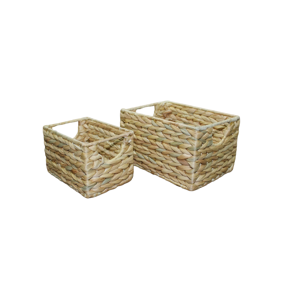 Bandejas de Almacenamiento Rectangulares Tejidas a Mano con Jacinto de Agua, con Asas, para Sala de Estar, Baño, Almacenamiento de Bebidas