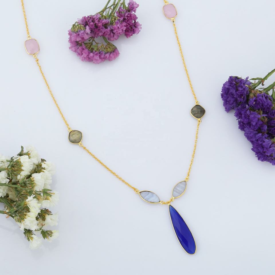 Hot Trendy 925 Sterling Silver Multi-Stone Collar Diseño único Cadenas chapadas en oro para regalo