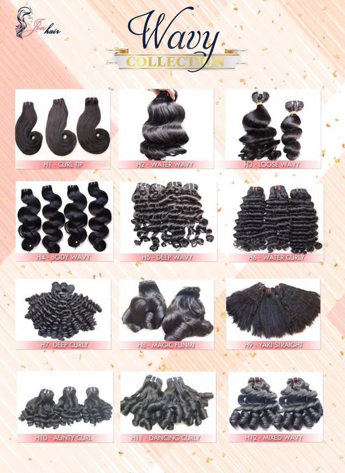 Rizo ondulado, Onda lisa sedosa, Teléfono curl, Rizos Jerry, Ola de agua, DEEP WAVE, Otros, Rizo italiano, Recto ondulado, Onda regular, Rizado africano, Onda natural, Ola italiana, Rizo grande, Ola profunda suelta, Rizo francés, Onda sísmica, Onda suelta, Fumi, súper ondulado, rizo de muelle, Yaki, RectoEstilo