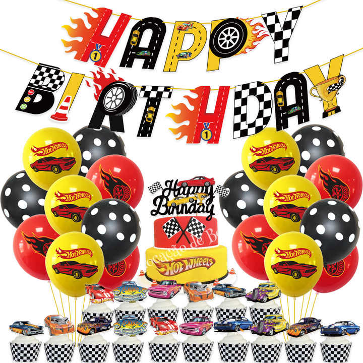 Artículos para Fiesta de Hot Wheels, Set de Globos con Pancarta de Autos de Carreras, Decoración de Pastel de Látex con Autos de Juguete para Fiesta de Cumpleaños de Niño Amante de las Carreras