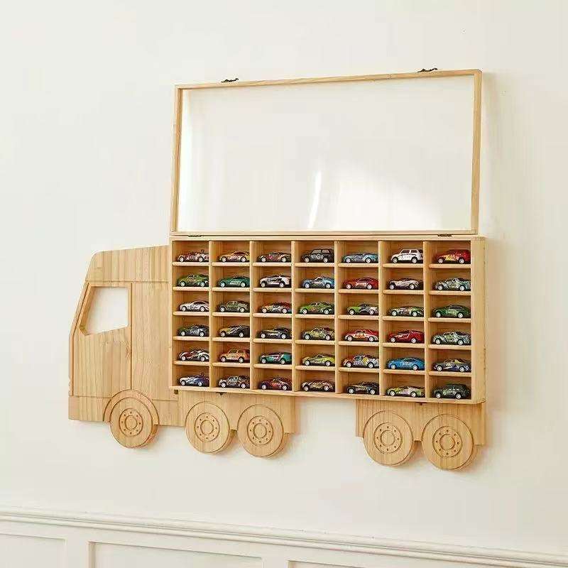 Estante de Almacenamiento de Juguetes Compatible con Camiones Hot Wheels con 80 Ranuras Caja de Almacenamiento de Madera Resistente Diseño Moderno para Niños