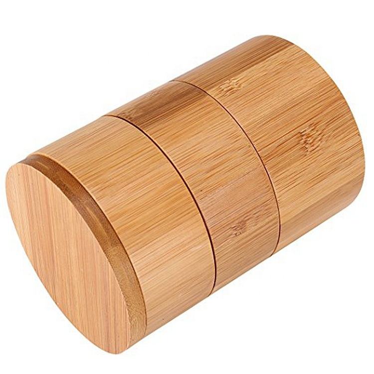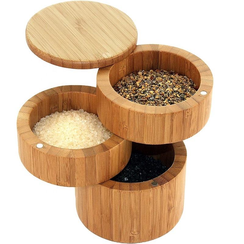 Nombre del producto:Tarro de especias y sal redondo de 3 niveles con tapa de bambú