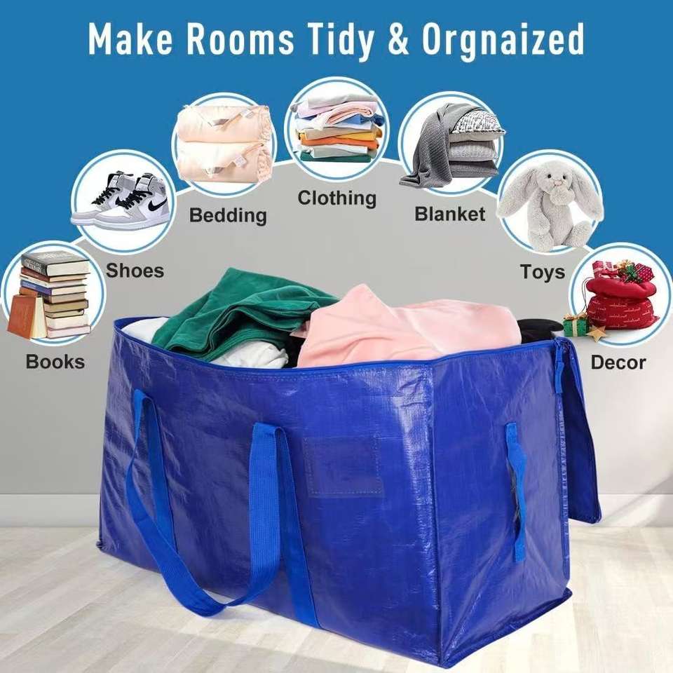 Bolsas de almacenamiento tejidas PP reutilizables de gran capacidad personalizadas al por mayor calientes con asa móvil impermeable para vendedor caliente de Amazon