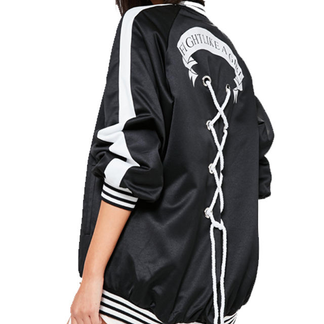 Palabras clave:Chaqueta bomber con eslogan en la espalda satinado negro