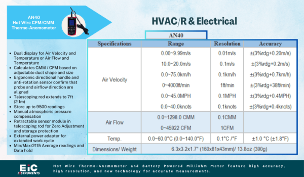 Termoanemómetro de cable caliente perfecto para uso en laboratorio y campo