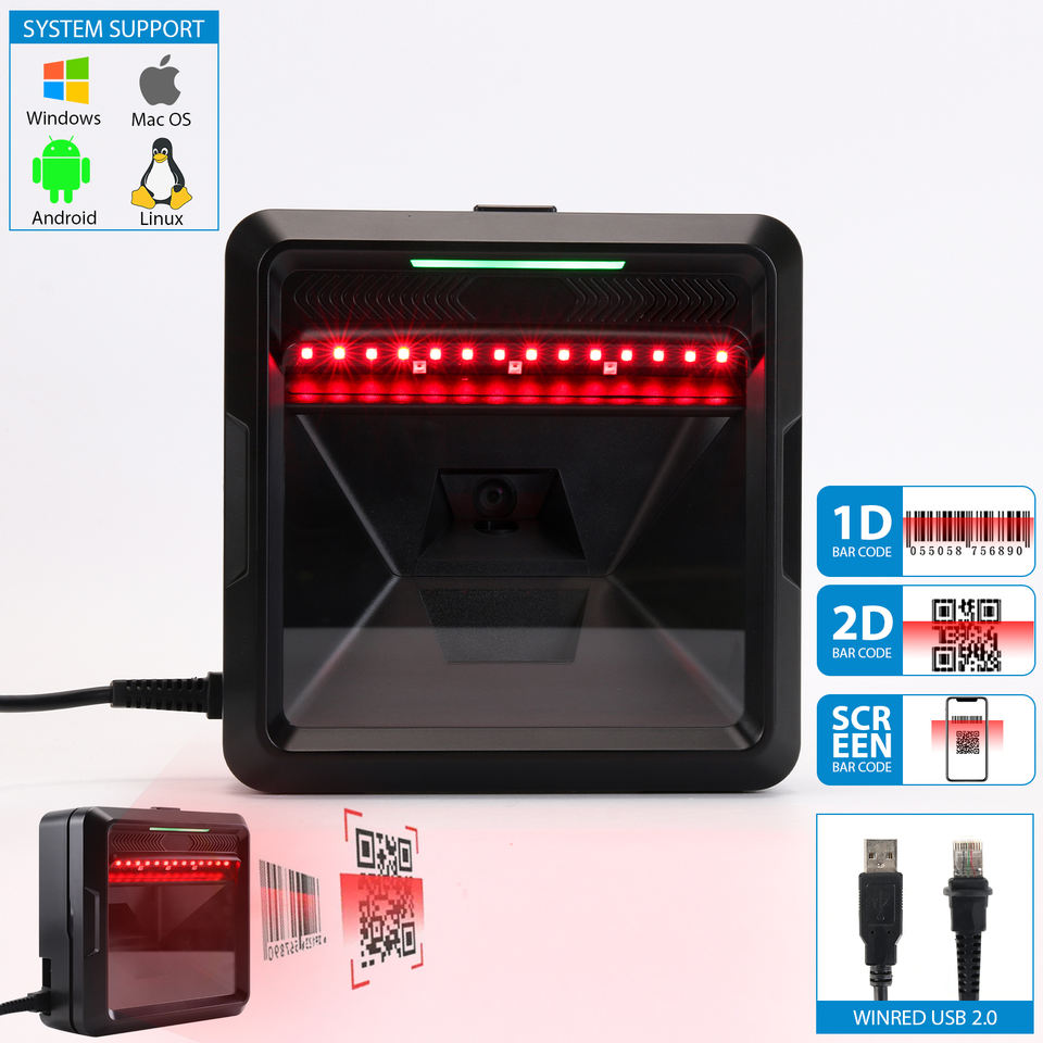 Escáner de Código de Barras USB Yoko MP8000Y, de Sobremesa, Manos Libres, de Alta Gama, con Millones de Píxeles, Lector de Códigos para Punto de Venta y Supermercado