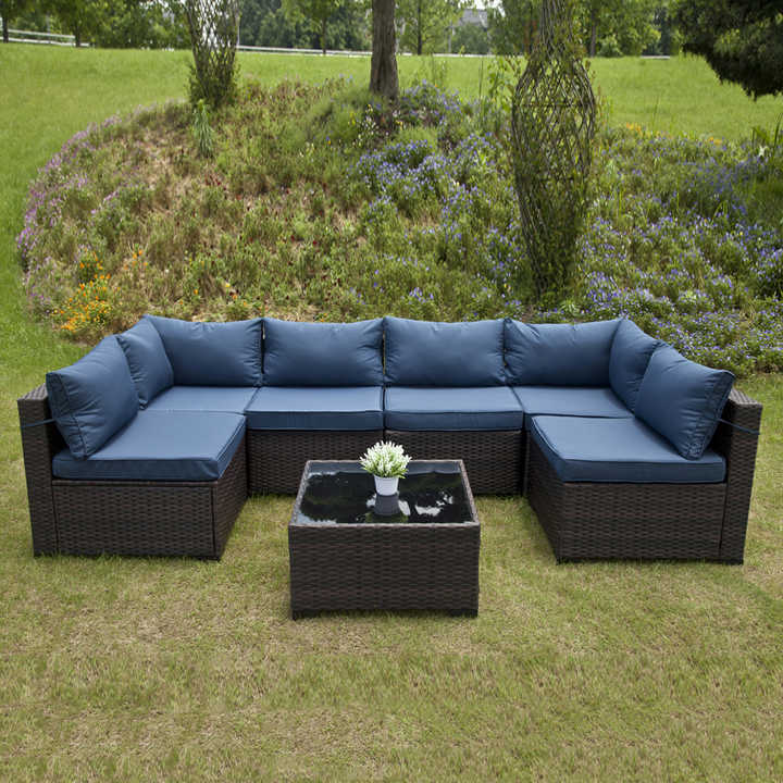 Caliente en stock barato moderno cubierta de muebles de caña al aire libre conjunto de jardín sofás de ratán para patio