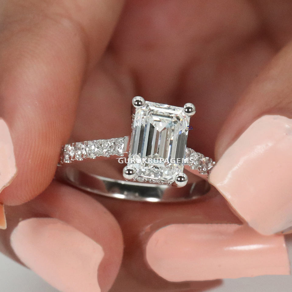 Nuevo Diseño Popular caliente para 2024 características estilo Esmeralda pavé ajuste anillos de boda para mujer en oro blanco de 14kt diamante hecho en laboratorio