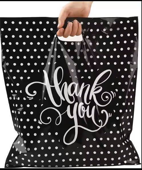 Gran oferta de bolsas personalizadas con logotipo, tela impermeable de plástico, bolsa de compras al por menor, bolsa de compras de plástico troquelada impresa con asa