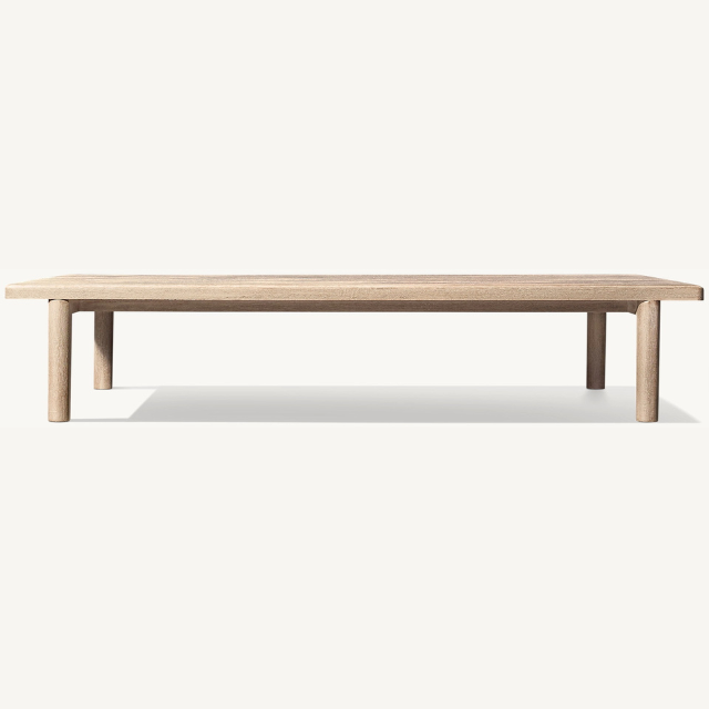 Mesa rectangular resistente en oferta, con estilo moderno para uso en exteriores, como en la terraza de la casa.