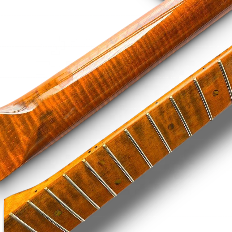 Venta Caliente al por Mayor, Mástil de Guitarra de 22 Trastes, Mástil de Guitarra ST con Diseño de Llama Oscura, Arce Flameado