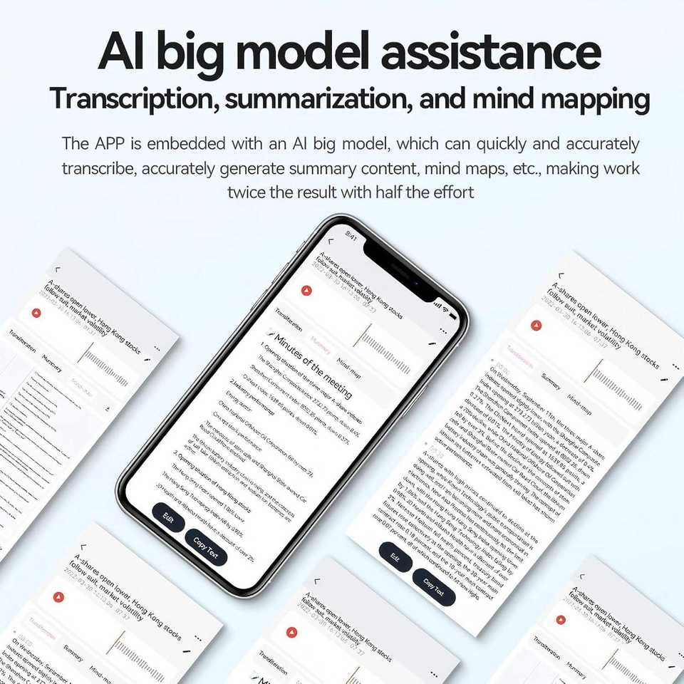 Grabadora de Voz Inteligente con IA, Asistente para Reuniones, 10 Horas de Grabación, Compatible con Bluetooth, Grabación Multilingüe y Simultánea