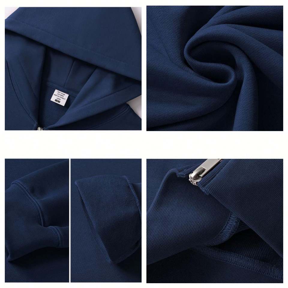 Sudadera con capucha de forro polar oversize sin cordón con cremallera, diseño liso y personalizable, de alta calidad para hombre, estilo boxy, superventas