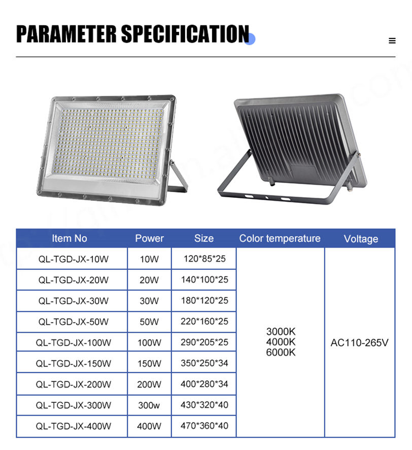 Venta caliente IP65 Reflector LED a prueba de agua Cuerpo de aluminio para exteriores 6000K 10W-400W Tipo montado en la pared para jardín