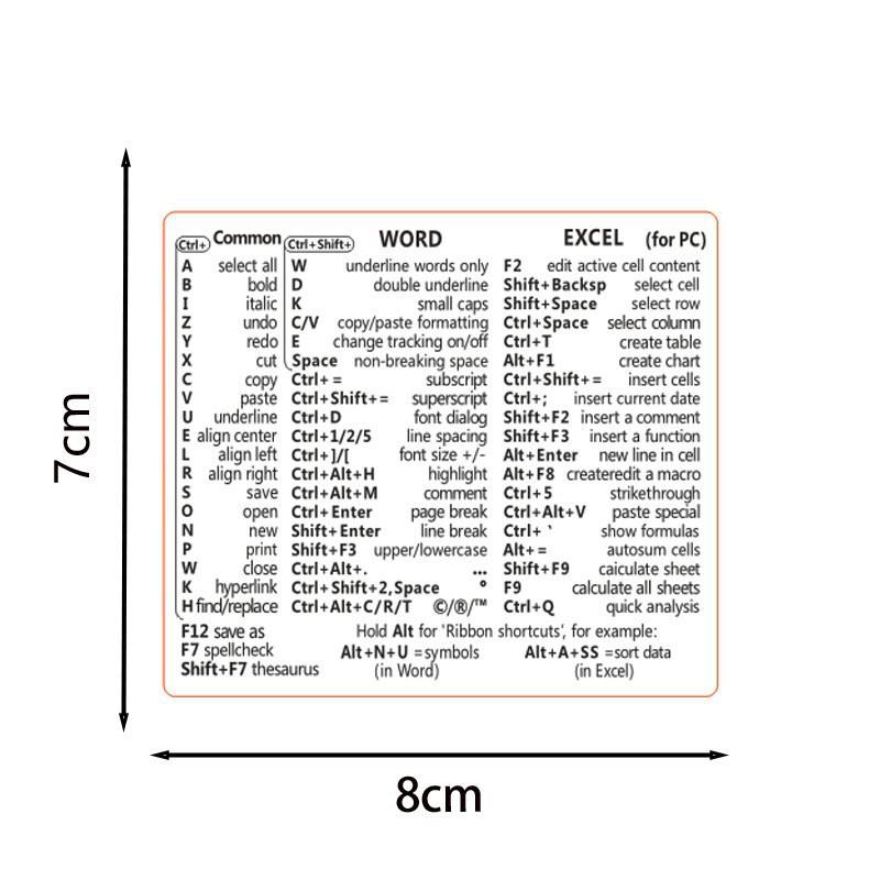 Especificaciones: Pegatina clave de acceso directo (tz-16)