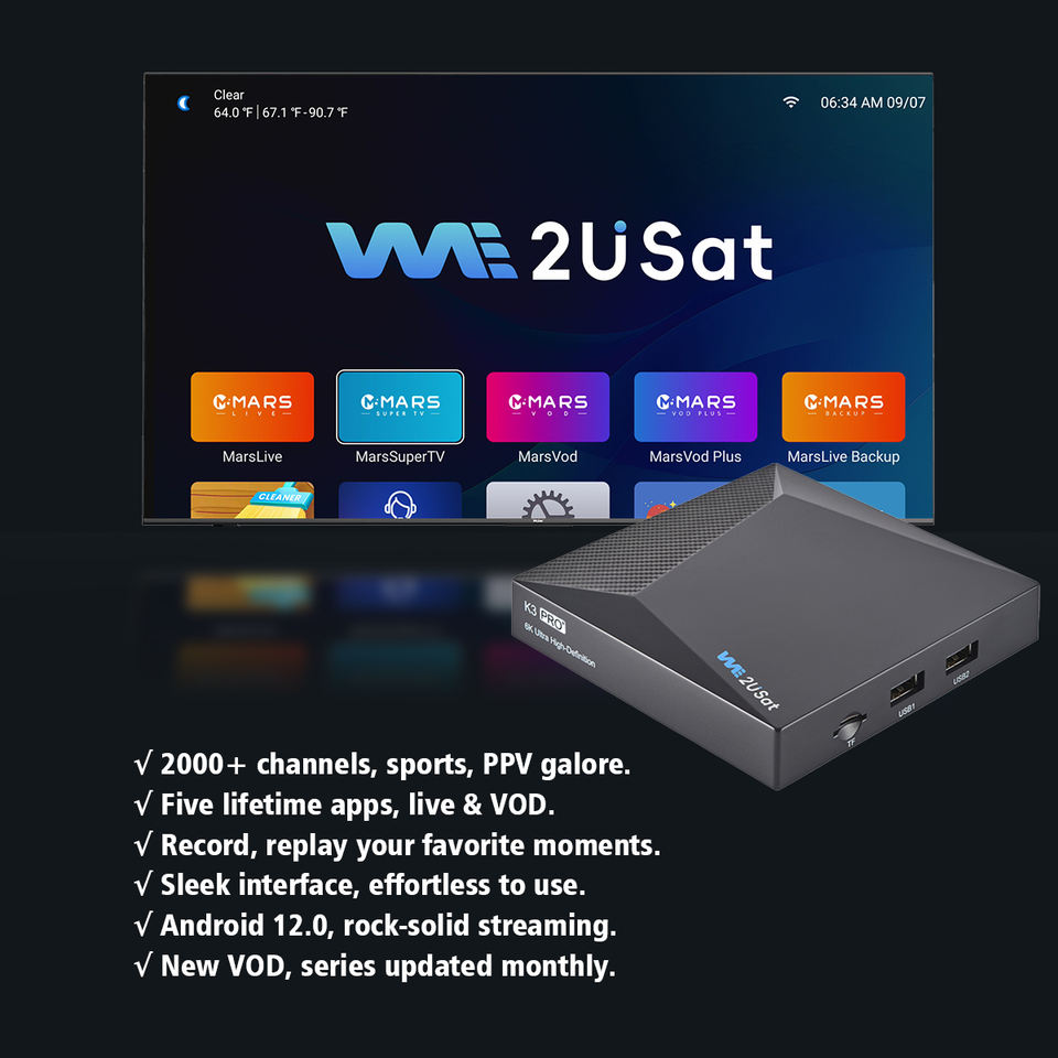 We2USat K3 PRO+ 4GB RAM 32GB H618 Android 12 TV Box 6K BT5.0 Wifi6 1000M Smart TV Box para Streaming de TV en EE. UU. VS Vseebox SuperBox