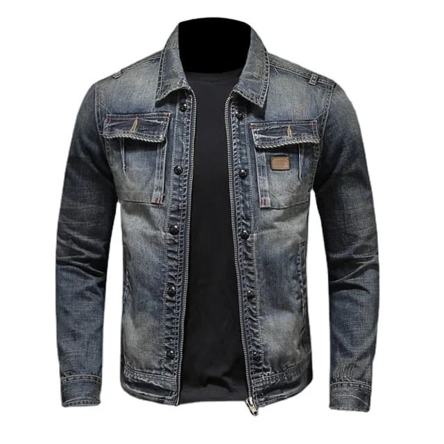 Chaqueta Vaquera para Hombre, 100% Algodón, Diseño Urbano de Invierno, Alta Calidad, Transpirable, Cuello Alto, Logotipo Frontal, Servicio OEM